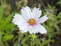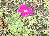 <学校の生き物たち紹介> 図書室南側の花壇で、早咲きのコスモスが可憐な花を咲かせています。
