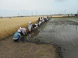 女子が植え終えました 男子が植え終えました きれいに植え終わった田の様子