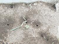 <学校の生き物たち紹介> 職員室前の花壇の角で、たくさんの巣穴を掘って、クロオオアリが忙しそうに活動しています。