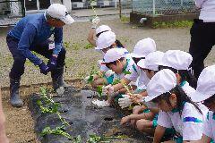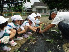 今日は、かかしの里のボランティアの方に来ていただき、さつまいもの苗植えを行いました。