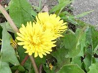 <学校の生き物たち紹介> 1年教室前の花壇の端で、セイヨウタンポポが黄色くかわいらしい花を咲かせています。