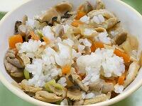 <今日の給食> ご飯(五目ご飯)・牛乳・五目ご飯の具・いかの照り焼き・豚汁