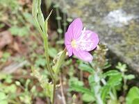 <学校の生き物たち紹介> 校庭南西角の雑木園や校舎北側の教材園などで、アカバナユウゲショウが小さなピンクの花を咲かせています。