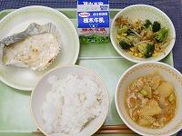 <今日の給食> ご飯・牛乳・白身魚の味噌マヨネーズ焼き・ブロッコリーのおかか和え・じゃが芋のそぼろ煮