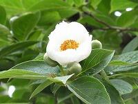 <学校の生き物たち紹介> 校舎南側にあるナツツバキが、白い花を咲かせ始めました。