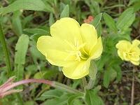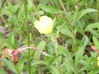 <学校の生き物たち紹介> 校庭南西部の雑木園で、コマツヨイグサが黄色い可憐な花を咲かせています。