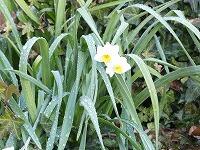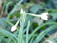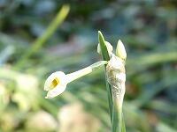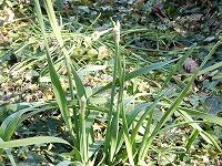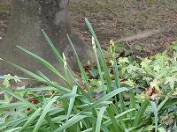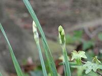 <学校の生き物たち紹介> 正門前の花壇では、ニホンズイセンが芽を伸ばし、つぼみを膨らませ始めています。