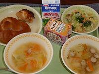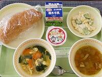 <今日の給食> ココア揚げパン・牛乳・大豆のサラダ・ミネストローネ