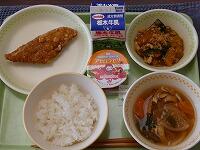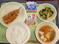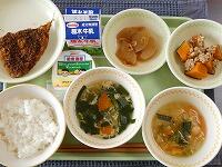 <今日の給食>【冬至・大平中央小リクエスト献立】ご飯・牛乳・ほっけの竜田揚げ・かぼちゃのそぼろ煮・大根と油揚げの味噌汁・アセロラゼリー