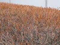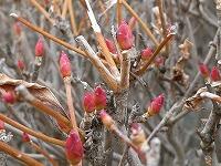 <学校の生き物たち紹介> 冬支度③ 校地内のドウダンツツジが、たくさんの小さな赤い芽を固く結び、冬越しの準備をしています。