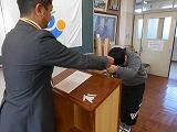 「点字の会どんぐり」の皆さんに点字の読み方や打ち方を教わり、実際に点字を打つ活動を行いました。