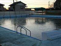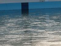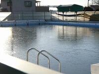 昨日からの冷え込みで、とうとう、プールの表面が全面凍結してしまいました。