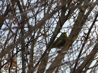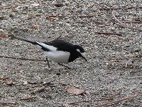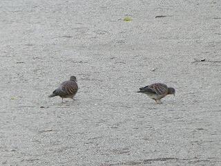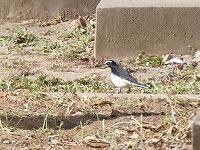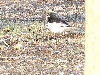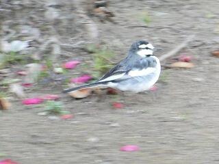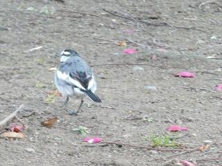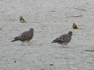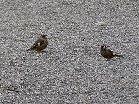 <学校の生き物たち紹介> 給食を検食している最中、校長室脇の校庭で、カワラヒワとセグロセキレイが、餌をついばんでいました。