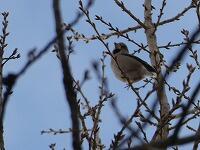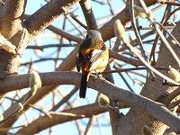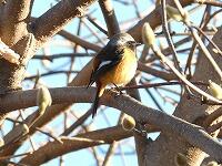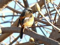 <学校の生き物たち紹介> 今朝の校庭巡回中、北校庭のモクレンの枝に止まっているジョウビタキ(オス)と出会いました。