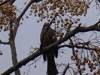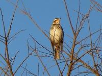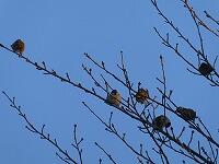 <学校の生き物たち紹介> 久し振りに鳴き声がするなと思って見上げると、すっかり葉を落としたエノキのてっぺんで、冬の使者ツグミが囀っていました。
