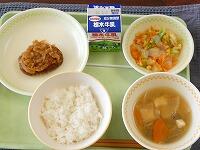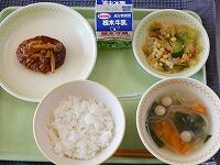 <今日の給食>【大平南小リクエスト献立】ご飯・牛乳・ハンバーグ和風おろし・こんにゃくサラダ・味噌けんちん汁