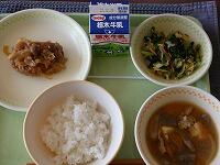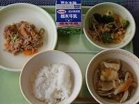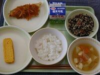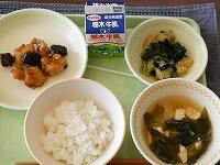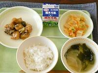 <今日の給食> ご飯・牛乳・焼きとり風煮・生姜漬け・大根の味噌汁