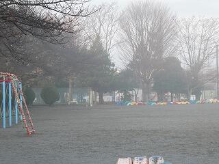 今朝は、寒さは緩んだものの、霧雨が降る中での登校でした。