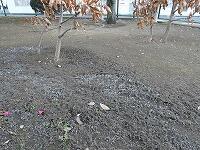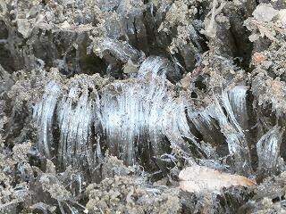 登校してきた子どもたちが、今シーズン初めての霜柱を、あちこちで見つけていました。
