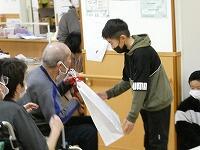 ペアになって、アイマスクをする人、誘導する人を交互に体験しました。相手の立場に立って、うまく誘導する姿が見られました。福祉について考えることのできる良い機会となりました。