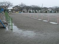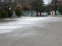 校庭や駐車場の雪は、ほとんどが解けて、シャーベット状になっていました。