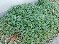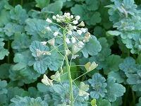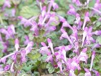 <学校の生き物たち紹介> 保健室前の花壇にホトケノザの群生があり、ナズナもひょっこりと顔を出しています。