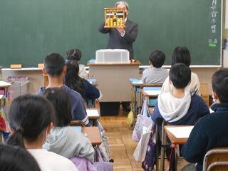 2月22日(木)の2時間目から4時間目にかけて、3年生対象のそろばん教室が行われました。栃木県ボランティア協会栃木地区の3名の先生から、そろばんの仕組みの説明を聞いて、簡単な足し算と引き算の問題に取り組みました。丁寧で分かりやすいご指導のおかげで、玉をはじく操作にもすぐに慣れ、集中して玉をはじく音が響いていました。