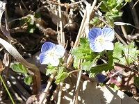 <学校の生き物たち紹介> 北校庭の教材園の角で、オオイヌノフグリが、かわいい青紫の花を咲かせています。