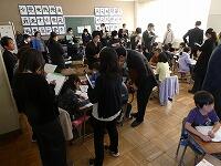 2月9日(金)の午後、次年度入学する新入生と保護者の皆さんを対象に一日入学を行いました。保護者の皆さんには体育館で、入学準備に関する説明やオピニオンリーダー「ほほえみの会」の皆さんによる子育て講座をお聞きいただきました。新入生は3つのクラスに分かれ、1年生の教室で歌をうたったり、お絵かきをしたりしました。最後に登校班の確認を行い、4~6年生の児童と一緒に歩いて、通学路の確認もしていただきました。新入生の皆さん、保護者の皆さん、4月の入学を教職員、在校生一同で楽しみにお持ちしています。