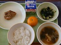<今日の給食>【大平中央小リクエスト献立】ご飯・牛乳・鶏肉のごまだれ焼き・磯香和え・大根と油揚げの味噌汁・みかん