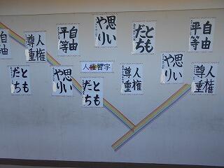 12月4日(月)~8日(金)の1週間を校内人権週間として、各学年それぞれの発達段階に応じて人権について考えることができるようにしました。3年生以上の学級では人権に関する習字を掲示したり、お昼の放送で人権に関する作文発表も行っています。12月6日(水)には、各学級で人権集会と称して、8月に6年生代表が参加して行われた「あったか栃木いじめ防止子どもフォーラム」などの動画を視聴しました。