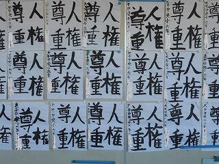 人権習字 3年生「ともだち」 4年生「思いやり」 5年生「自由平等」 6年生「人権尊重」