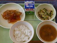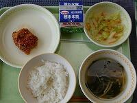 <今日の給食> ご飯・牛乳・ヤムニョムチキン・やみつきキャベツ・わかめスープ
