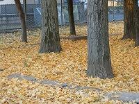 <学校の生き物たち紹介> 校庭南西部の雑木園のイチョウも、日に日に葉を落とし、黄色い絨毯ができています。