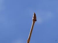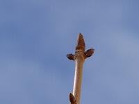 <学校の生き物たち紹介> 校舎前のトチノキの枝先には、冬の厳しい寒さを乗り越え、暖かい春の訪れを待つ新芽がたくさん見られます。