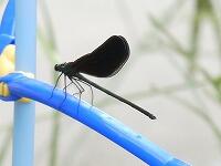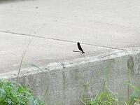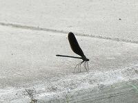 <学校の生き物たち紹介> 朝の校庭巡回中、校舎南側の犬走りなどで羽を休めるハグロトンボと出会いました。
