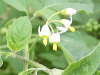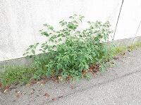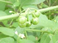 <学校の生き物たち紹介> 図書室西側の壁沿いで、イヌホウズキが、白い小さな花や黄緑色の小さな実を付けています。