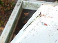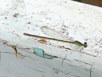 <学校の生き物たち紹介> 今朝、正門の扉の上で羽を休めているアジアイトトンボと出会いました。