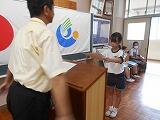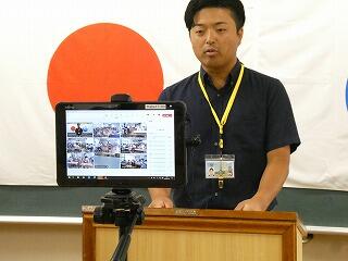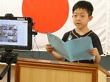 次に終業式をオンラインで行いました。学校長からは1学期の児童の頑張りを振り返り、称賛の言葉掛けと夏休みの過ごし方について話がありました。代表児童の作文発表では、自分が頑張って取り組んできたことについて堂々と発表することができました。終業式の後には、児童指導の担当者から安全で充実した夏休みが過ごせるように話がありました。