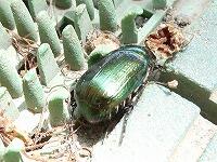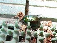 <学校の生き物たち紹介> 校長室前で、マットに顔を埋めるヒメスジコガネと出会いました。