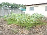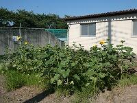 そのような中、体育館の南側では、技能員さんが種から育ててきたヒマワリが花を咲かせ始めました。