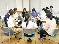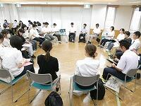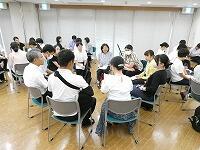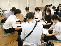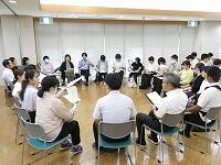 開会行事の後、市内の高校生や大学生が司会やコーディネートを担当し、10のグループに分かれて協議を行いました。