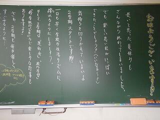 それでは、明日からみんなが待ちに待っていた44日間の夏休みが始まります。楽しい夏休みを過ごしてください。そして9月2日(月)の第2学期の始業式の日に、全員元気一杯で登校してきてくれることを期待しています。