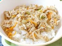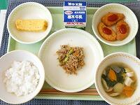 <今日の給食> ご飯(お魚丼)・牛乳・お魚丼の具・厚焼き卵・いなか汁