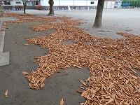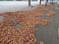 <学校の生き物たち紹介> 色付いていたトチノキの葉が、週休日の大風で一気に吹き落とされ、奇妙な模様を形作っていました。