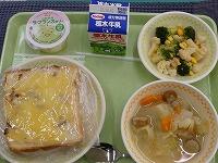 <今日の給食> グラタントースト・牛乳・花野菜サラダ・ポトフ・洋梨ゼリー