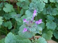 <学校の生き物たち紹介> 保健室前の花壇にホトケノザの群生があり、ナズナもひょっこりと顔を出しています。