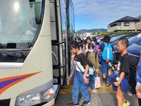 4年生が出発式を行い、バスでみかも山に向かっています。わくわくドキドキの2日間のスタートですね❗