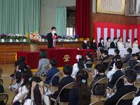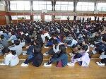 学校では、本日をもって平成29年度の教育課程を修了することから、体育館において、平成29年度修了式を行いました。