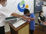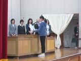 始めに、各クラスの代表が、校長先生から修了証を受け取りました。